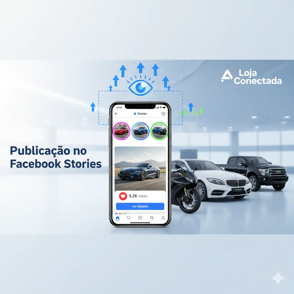 Publique fotos e vídeos dos seus veículos nos Facebook Stories e apareça no topo do feed dos seus seguidores.