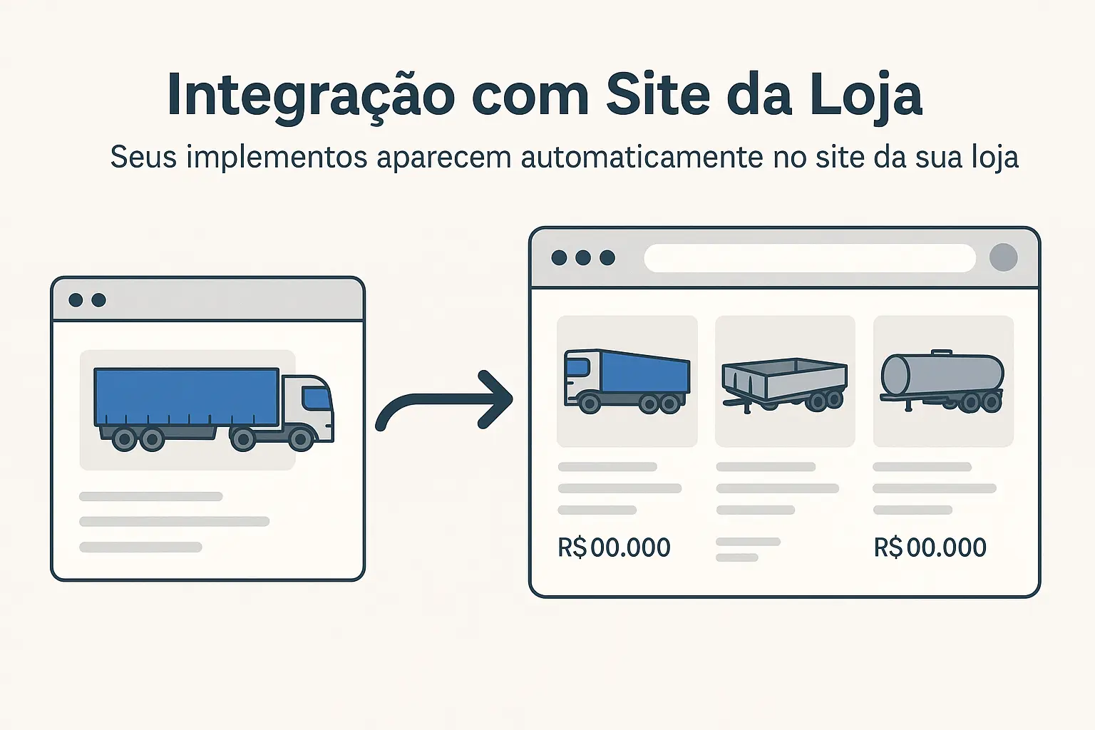 Quando você cadastra um implemento no integrador, ele aparece automaticamente no site da sua loja. Mantenha seu site sempre atualizado com seu estoque real.